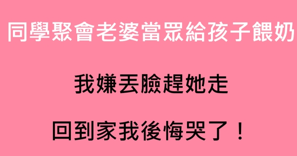 大家好,我是 Ant 今天來跟你說說 同學聚會老婆當眾給孩子餵奶,我嫌丟臉趕她走,回到家我後悔哭了!吧!讓我們來看看!
