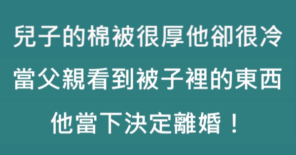 兒子的棉被很厚他卻喊很冷,當父親看到被子裡的東西,他當下決定離婚!