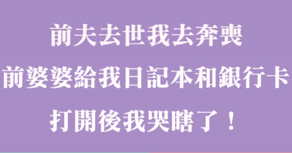 大家好,我是有錢人這麼想小編Choco!今天要來說說關於前夫去世我去奔喪,前婆婆給我日記本和銀行卡,打開後我哭瞎了!的事!不知道大家對於這個有多了解呢?一起來看看吧!
