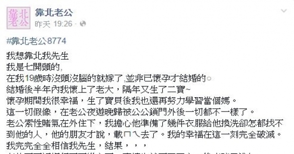 ▼一位網友在靠北老公PO文。