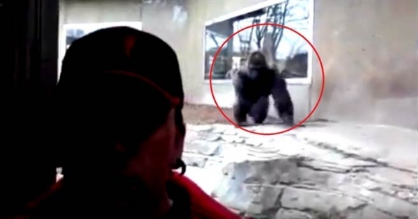 從影片中可以看到,遊客阿曼達布里格思(Amanda Briggs)正在拍攝,有個男子背對著大猩猩拍照,沒想到大猩猩不知道哪根筋不對勁,毫無預警地朝這個男子撲過來,想要攻擊他,張牙舞爪的樣子非常嚇人。