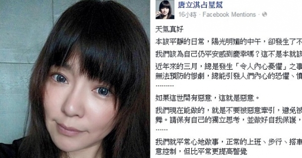 除此之外,唐立淇發文後,被粉絲發現早在一個禮拜前,就曾在臉書直播中多次呼籲「3~5月要注意」,除了預言自己這段時間有可能被誤解、被罵之外,還警告「很可怕的事情、白木、小屁孩、自私自我的神經病、滿街亂竄的都很多,我們這種正常人就要小心,避開這種討厭的人事物。」