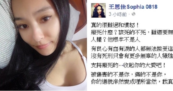 女星「王思佳」這次火大了 「這段話」讓所有支持廢死的人無地自容