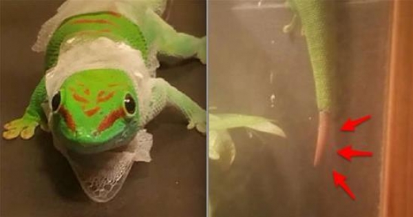 這隻壁虎從高空摔下後一直「啃食自己的尾巴」!沒想到下一秒....!
