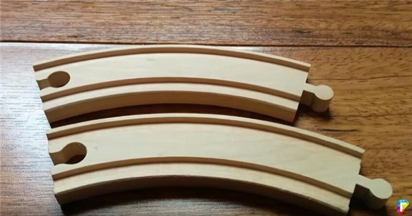 這兩條鐵軌看起來明明就是一大一小,但是當他伸手把這兩條玩具鐵軌疊在一起時.....竟然完美重疊了!!!!
