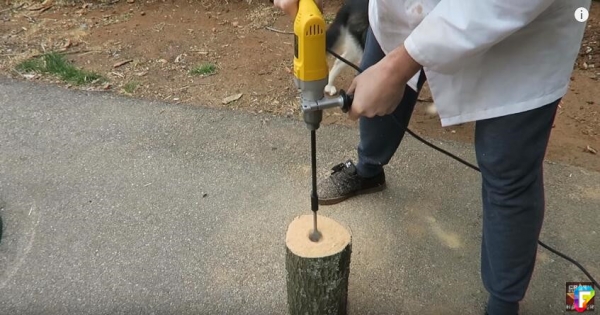 只需要在木頭的中心和側面鑽孔,然後加上一點燃料,把爐火點燃之後呢~~~........