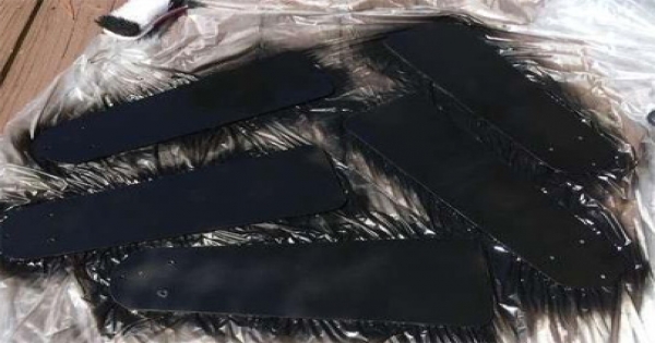 首先噴成黑色。噴漆進行時不要吃東西,避免弄髒葉片
