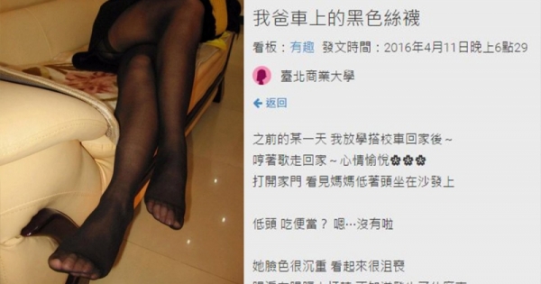 媽:(啜泣)我剛剛去車上拿我的墨鏡,發現車子後座有一雙黑絲襪⋯