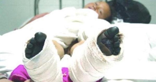 緊急送醫後,醫生擔心會有截肢的可能,所以趕緊剪開手腕跟腳踝上的紅線,線一被剪開,過一陣子後,小男童的雙腳漸漸從黑色變回原本正常的顏色了,但雙手仍然沒有恢復「孩子的雙手完全黑了,右手最嚴重,手臂上段也黑了。」