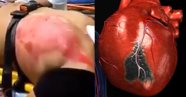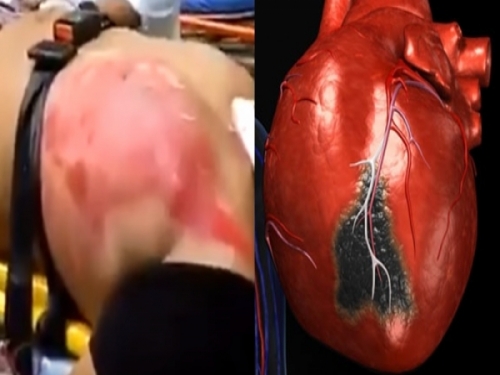 可以看到男子胸口的心臟部位,又紅又腫,心臟不斷急速跳動,護士一直在他心臟周圍塗抹藥膏,可能是清涼降血壓的成份吧?過程實在太恐怖!