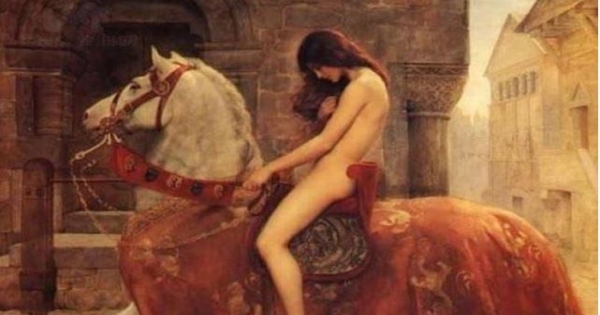 他們決定打賭——Godiva夫人要赤裸身軀騎馬走過城中大街,僅以長發遮掩身體,假如人民全部留在屋內,不偷望Godiva夫人的話,伯爵便會宣布減稅。翌日早上,Godiva夫人騎上馬走向城中,Coventry市所有百姓都誠實地躲避在屋內,令大恩人不至蒙羞。