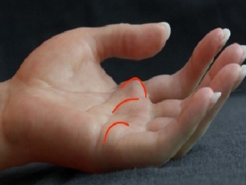 你可做個試驗,先把手伸直伸平就是放在水平位置上,然後把杯子中的水倒在手掌中央,一分鐘後觀察留在手掌中央的水,看看有多少。水的多少代表你的財富多少。