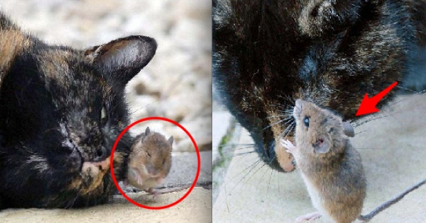 母貓生下一窩寶寶後有兩隻小老鼠混進去,下一秒竟發生了...