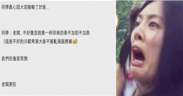 他和朋友打賭輸了,被迫跟老闆說「要一杯珍珠奶茶不加茶不加奶」