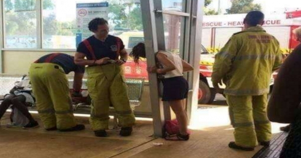 ▼1. 她的頭被卡住,不得不找消防員過來幫忙。