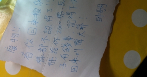 結果到今天晚上我才看到皮夾的夾層夾著一張紙.....