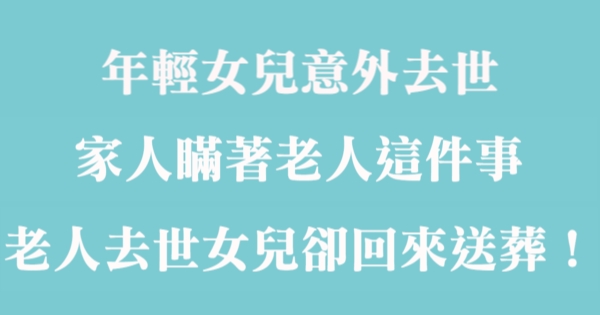 大家好,我是有錢人這麼想小編Choco!今天要來說說關於「年輕女兒意外去世,家人瞞著老人這件事,老人去世女兒卻回來送葬!」的事!不知道大家對於這個有多了解呢?一起來看看吧!