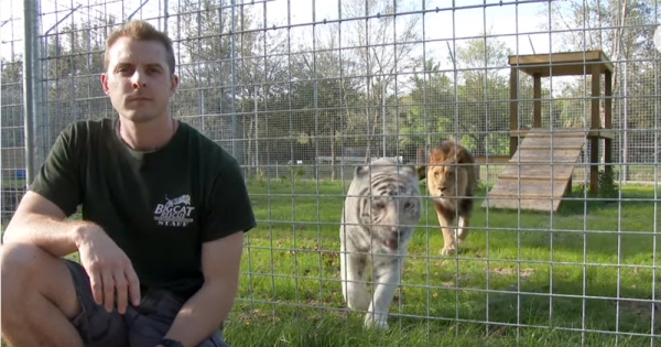 這名在美國佛羅里達州坦帕市做動物收留所義工的男子,為了想要勸導大家不應該把大型貓科類當寵物,決定自己來做示範「背對着大型貓是一件多麼危險的事情」…他的示範對象有獅子、老虎、豹等等。