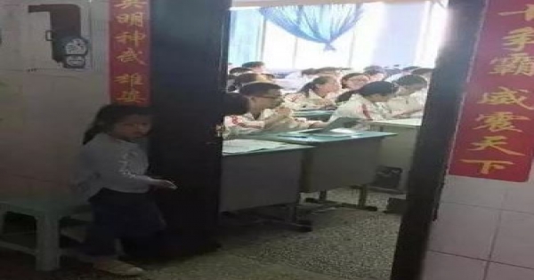 近日,微信公眾號“商丘教師團”曝光了一張照片,讓所有看到這張照片的人都沉默了。圖中,一個小女孩可憐巴巴地站在一間教室的門口,彷彿做錯了什麼事一樣用手摳著門框,身後放著一個塑料凳子。