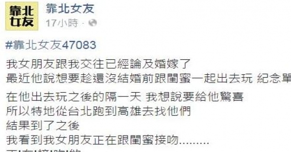 最近他說想要趁還沒結婚前跟閨蜜一起出去玩 紀念單身這樣