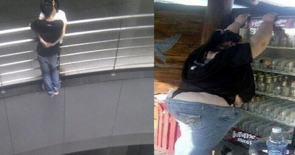 天啊,這姊姊的屁股也太有肉了吧,感覺就算是跌倒了也不會痛,只不過是褲子太小還是屁股太大呢?內褲都跑出來了呢。