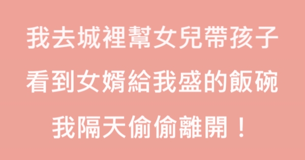 哈摟哈摟各位讀者~~我是有錢人這麼想小編Choco!今天要來說說關於「我去城裡幫女兒帶孩子,看到女婿給我盛的飯碗,我隔天偷偷離開!」,不知道大家有沒有興趣呢!一起來看看是怎麼樣的事吧!