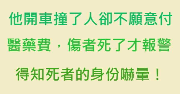 他開車撞了人卻不願意付醫藥費,等傷者死了才報警!知死者的身份馬上嚇暈!