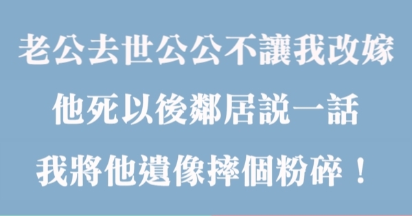 哈摟哈摟各位讀者~~我是有錢人這麼想小編Choco!今天要來說說關於「老公去世公公不讓我改嫁,他死以後鄰居說一話,我將他遺像摔個粉碎!」,不知道大家有沒有興趣呢!一起來看看是怎麼樣的事吧!