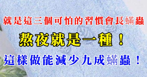大家好,我是健康一點靈小編CA!今天要來說說關於「就是這三個可怕的習慣會長蟎蟲,熬夜就是一種!這樣做能減少九成蟎蟲!」的事!不知道大家對於這個有多了解呢?一起來看看吧!