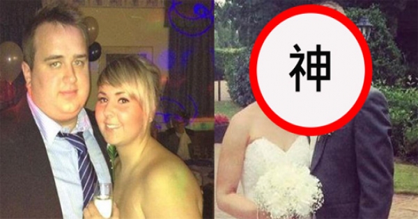 一年之後,在婚禮前夕麥特竟減掉了將近90磅(40公斤)。漢娜也減掉了45磅(20公斤)。別人簡直不敢相信婚禮上的他們是同一個人,這對情侶幾乎沒人認得出來。如果你之前不認識他們,你絕不會猜到他們是誰。