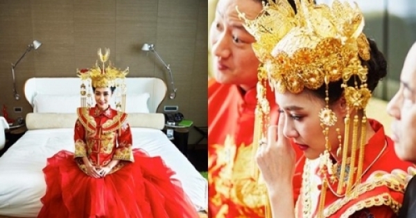 而她的華麗婚紗也是眾人注目焦點,不同於西式婚紗,這一身大紅色的中式婚紗模樣彷彿「武媚娘」般,相當搶眼。
