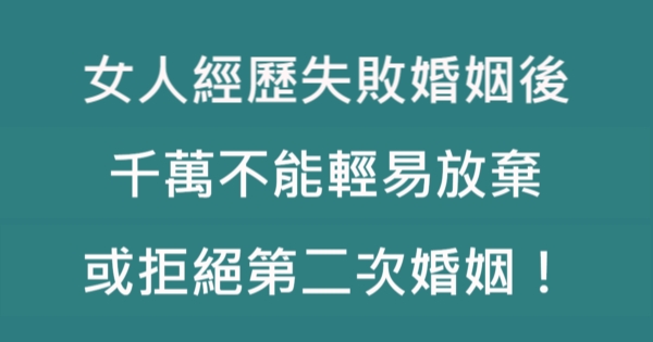 哈摟哈摟各位讀者~~我是有錢人這麼想小編Pineapple!今天要來說說關於「女人經歷失敗婚姻後,千萬不能輕易放棄、拒絕第二次婚姻!」,不知道大家有沒有興趣呢!一起來看看是怎麼樣的事吧!