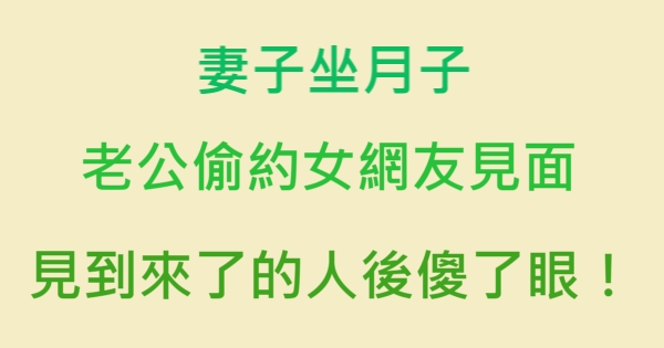 妻子坐月子,老公偷約女網友見面,見到來人後傻眼了!