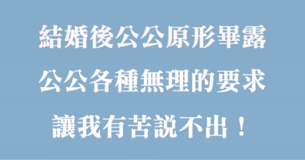結婚後公公原形畢露,公公各種無理要求,我有苦說不出!