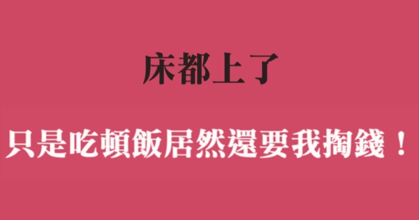 哈摟哈摟各位讀者~~我是有錢人這麼想小編Pineapple!今天要來說說關於「床都上了,只是吃頓飯居然還要我掏錢!」,不知道大家有沒有興趣呢!一起來看看是怎麼樣的事吧!