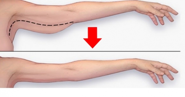 將右手臂伸高,往身後左肩胛骨彎曲,以左手壓著右臂關節處,並觸碰左肩胛骨,爾後伸高,左右換邊,如此動作每天做二十次。如果在剛做的時候會覺得手臂很酸,即表示運動到那個部位了,而脂肪正在燃燒。