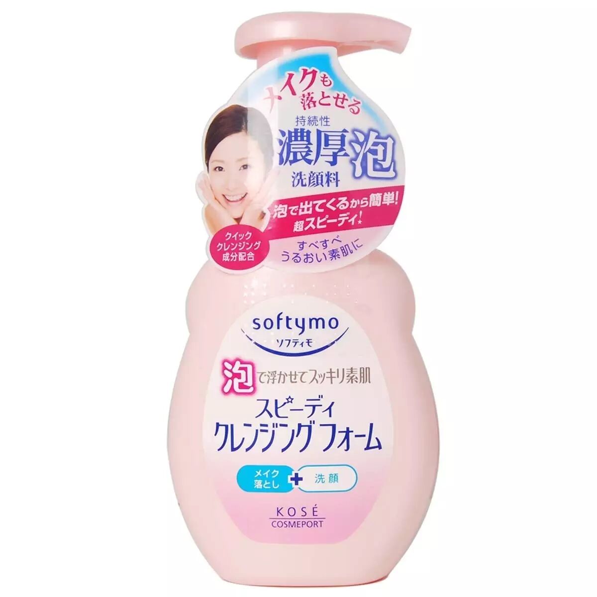 日本KOSE高絲softymo泡沫保濕卸妝2合一潔面泡沫,濃密細膩的泡沫,可卸除日常彩妝及防曬,深層清潔毛孔內的污垢,去黑頭收毛孔,保濕成分配合,不化妝也可以用哦!