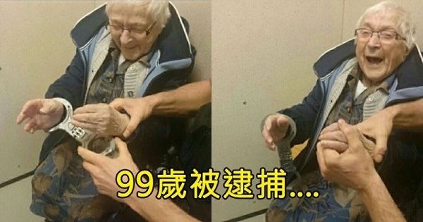 這個「99歲的老阿罵」被員警逮捕之後笑超爽,網友「她這輩子太值得了!!」