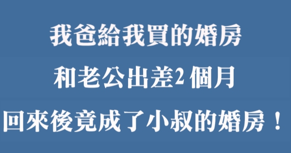 哈摟哈摟各位讀者~~我是有錢人這麼想小編Pineapple!今天要來說說關於「我爸給我買的婚房,和老公出差2個月,回來後居然成了小叔子的婚房!」,不知道大家有沒有興趣呢!一起來看看是怎麼樣的事吧!