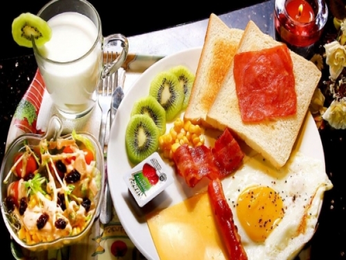 若早餐吃的太單一,如只選牛奶、零食、水果等,極易導致血糖降低而無法及時提供充足的能量給大腦,便會造成心慌、乏力、注意力不集中等現象,工作與學習也隨之會大受影響。早餐吃得豐盛,血糖、血脂控制得更好,減肥效果也更好;但太過營養的早餐含高蛋白、高熱量,如漢堡、油炸等只會使腸胃負擔變重,導致肥胖率增加。
