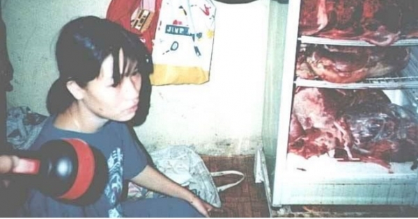 當警察闖進她家看見一個面目全非的人,地板上全是帶著異味的黑色液體。她坐在放著一飯桌前正用勺子食用那些東西,還很鎮定的對三個已經發木的警察說:我吃完這些就好了,一會就跟你們走。