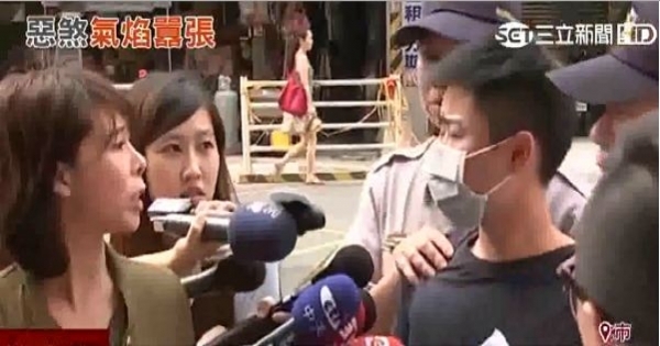 2男昨天下午1到案,面對媒體鏡頭,莊男頭抬得高高的,這時一名女記者追問,「他(店員)叫你出示證件,你是在凶什麼?不行嗎?」莊嫌則是瞪了對方一眼,另一名女記者接著問「2個打1個,這樣對嗎,人家才幾歲你這樣打人家」,第一位女記者再問「人家打工關你什麼事啊……這麼凶,誰教你的?」莊男聽到這句話忍不住又瞪了對方一眼,女記者毫不畏懼,再嗆「瞪什麼?瞪什麼?」