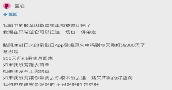 點開塵封已久的倒數日App發現原來車禍到今天剛好滿300天了