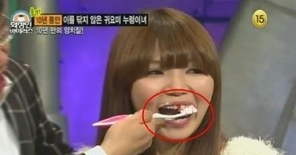 更驚人的是她最後一次刷牙是在她十歲的時候,因為十歲之前都是媽媽幫她刷牙,10歲之後媽媽就沒有幫她刷牙,後來她就再也沒有刷過牙了….