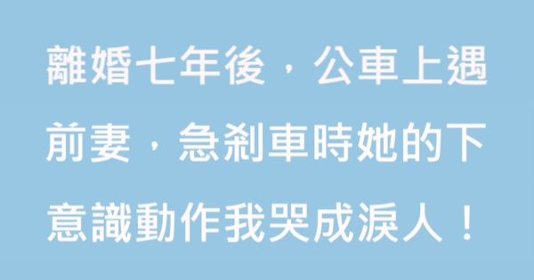 哈摟哈摟各位讀者~~我是有錢人這麼想小編Choco!今天要來說說關於「離婚七年後,公車上遇前妻,突然急剎車時她的下意識動作我哭成淚人!」,不知道大家有沒有興趣呢!一起來看看是怎麼樣的事吧!