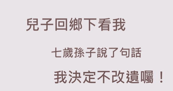 於是,我馬上給兒子打了個電話,說讓把孫子接走,這遺囑我也決定不再改了。