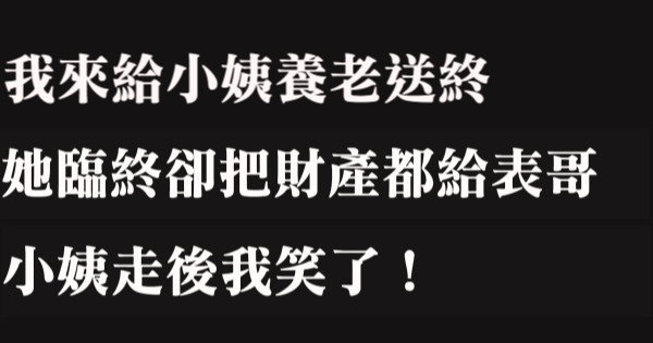 大家好,我是有錢人這麼想小編Choco!今天要來說說關於「我來給小姨養老送終,她臨終卻把財產都給表哥,小姨走後我笑了!」的事!不知道大家對於這個有多了解呢?一起來看看吧!