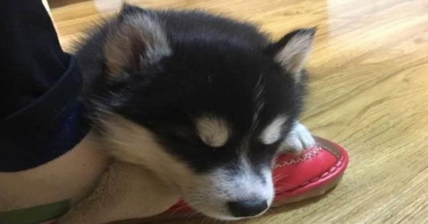 後面網友發現小哈特別的喜愛枕著自己的拖鞋睡,於是就把拖鞋賞了小哈,再把它放到籠子里,竟然就乖乖的不叫了!