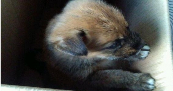 順著叫聲,找到了一個小盒子,里面是一隻兩個月不到的小土狗~