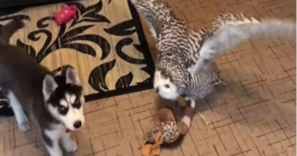 哈士奇跟貓頭鷹之間主人感覺牠們特別好,沒想到某天牠突然對哈士奇做出「超曖昧舉動」!讓他嚇歪了!